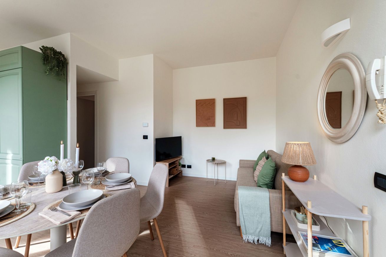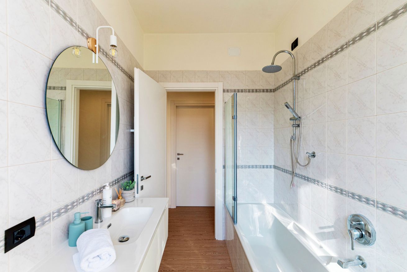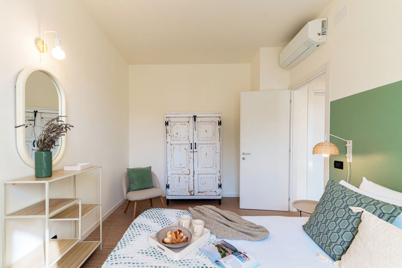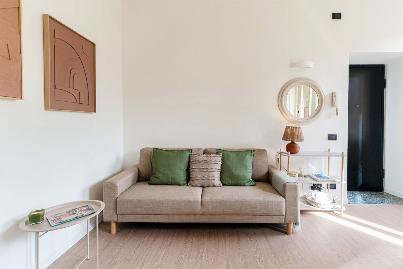 This apartment is located on the second floor of a quiet building and is accessible by flights of stairs, as there is no lift. Casa Sara also has a large private balcony but its external access is shared, as it is adjacent to another apartment