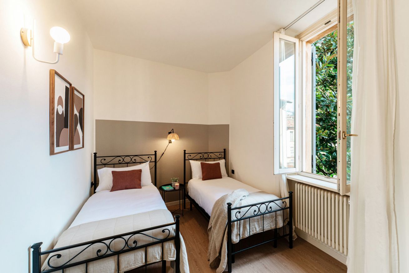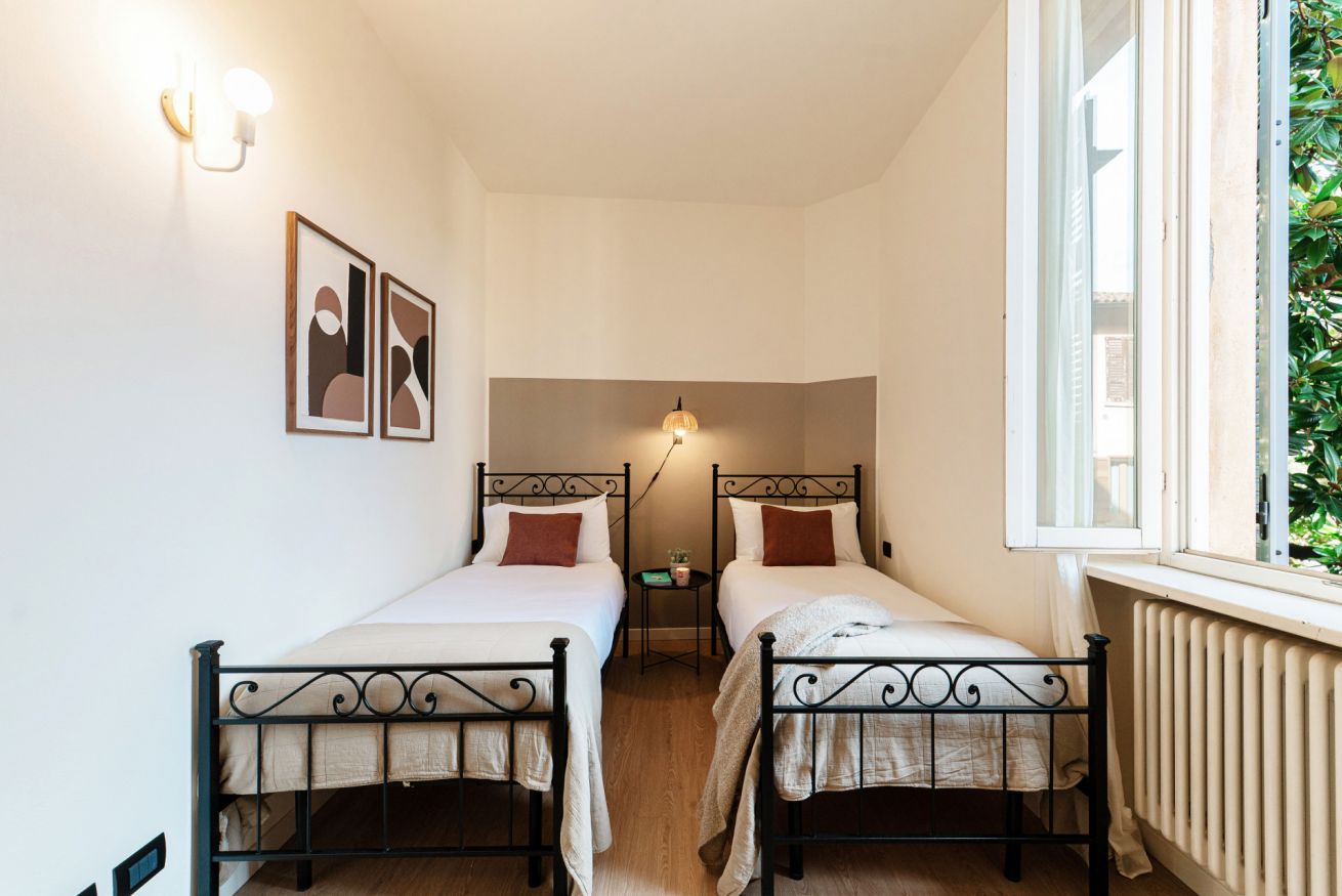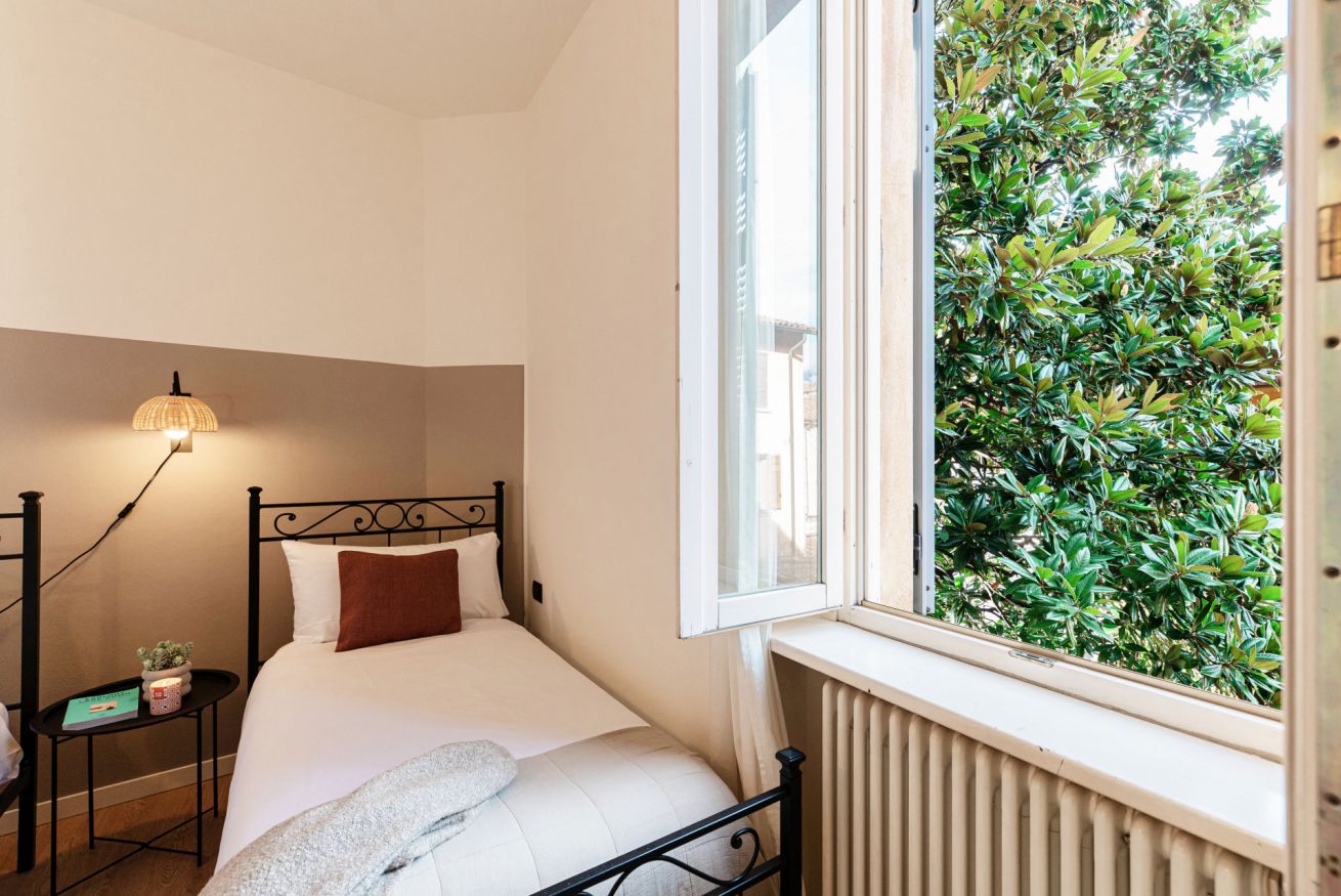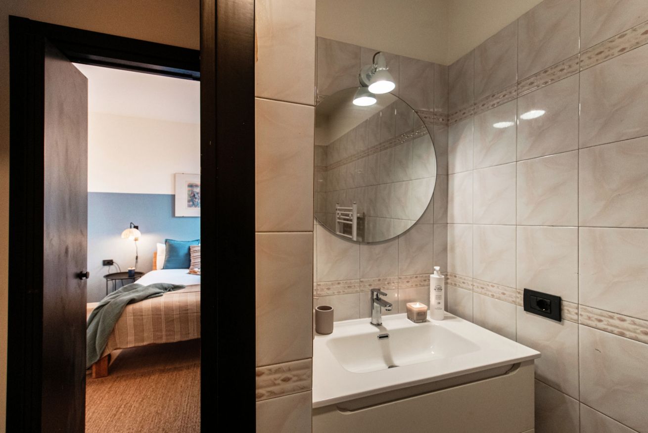 The spacious and bright rooms of this large apartment will allow you to stay in complete peace and relaxation. Being very close to the San Giovanni train station and just a few steps from the historic centre, this location will be absolutely strategic for your stay. A truly comfortable and convenient place that combines style and functionality thanks to its modern and tastefully selected furnishings. Moreover, Casa Sara is located on Via Borgo Vico Vecchia, a street once filled with workshops and artisans, which still retains its charm today with its small shops, cafés and typical restaurants.